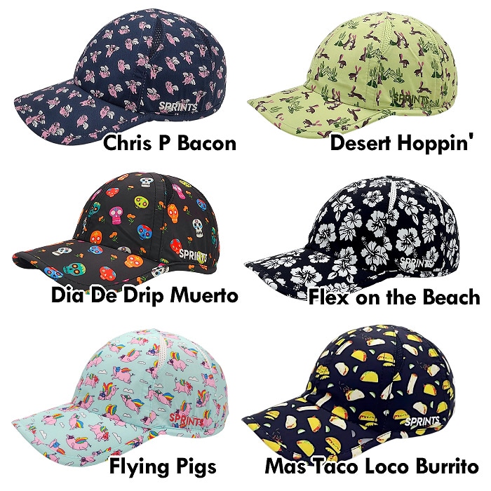 そのコンセプト通り、高機能でありながらカラフルでユーモアのあるプリントキャップは、シンプルでブラックベースの多い現在のランニングウェアの遊びや、はずしのアイテムとして、アメリカ中のランナーから大変な人気となっております。