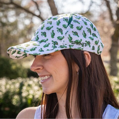 そのコンセプト通り、高機能でありながらカラフルでユーモアのあるプリントキャップは、シンプルでブラックベースの多い現在のランニングウェアの遊びや、はずしのアイテムとして、アメリカ中のランナーから大変な人気となっております。