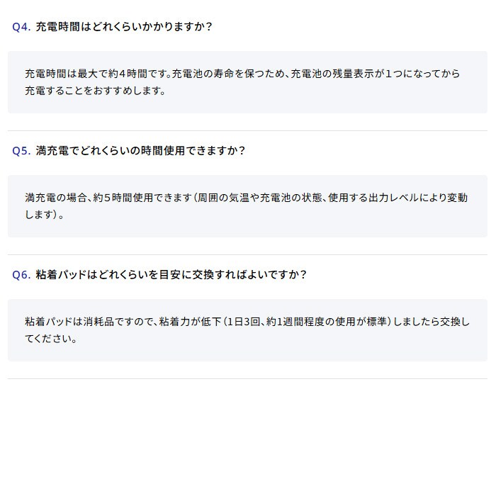 ※粘着パッ ドは消耗品ですので、粘着力が低下(1日3回、約1週間程度の使用が標準)しましたら交換が必要となります。