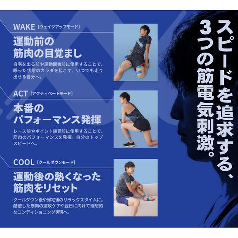 スピードを追求するすべてのランナーのための、まったく新しいコンセプトの筋電気刺激機器です。