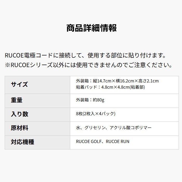 RUCOE電極コードに接続して、使用する部位に貼り付けます。
