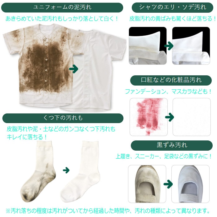 あきらめていたガンコな汚れが洗濯前のひと手間で、驚くほどまっ白に。
