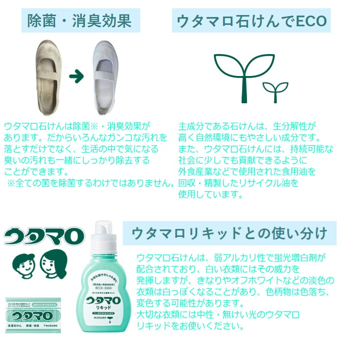 ウタマロ石けんは植物性のリサイクル油を使用しております。