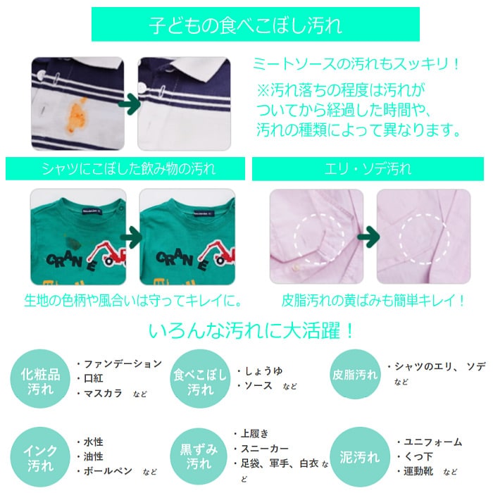 (色柄物やおしゃれ着についたしつこい汚れの部分洗いに。一般の洗濯用洗剤としても使えます。)