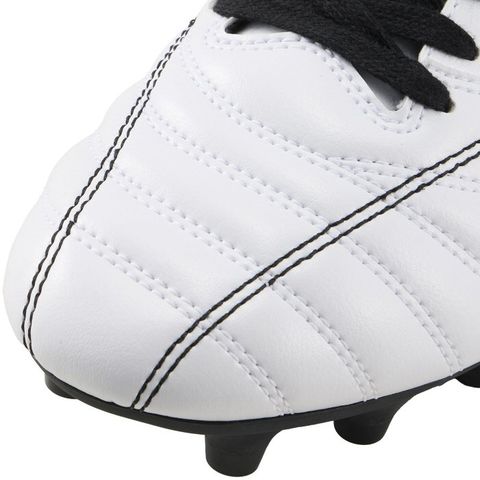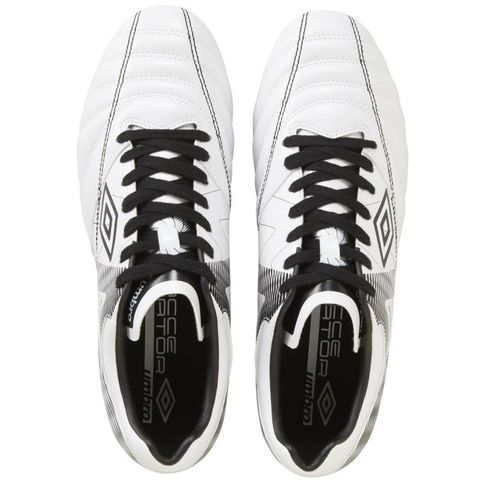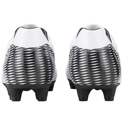 ■『ACCERATOR』シリーズの合成皮革アッパーシューズ。フットボールの激しい動きの中でパフォーマンスを発揮することをコンセプトにラスト開発を実施。アンブロが持つフィッテイングサポートファンクションのAフレームをグラッフィクデザインで表現。インステップキック時のインパク?を意識しやすいプリント加工を採用。プレー時の安定感向上を目指し、指が動かしやすい前足の適度な幅と、かかと回りの立体形状にこだわり設計。ラスト設計を活かせるような中足部のパターン構造やシューホールデザインを採用。かかと周辺は自然な収まりを目指して材料選択を実施。人工芝、天然芝、ハードグランド対応のアウトソールはパフォーマンスアップを目指し、刺さりと抜け易さを目指した設計を採用。