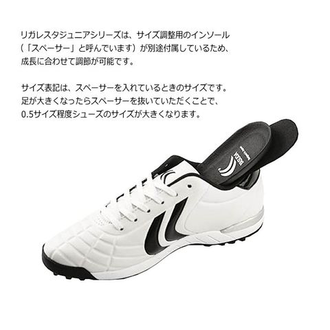 ※リガレスタジュニアシリーズは、サイズ調整用のインソール(「スペーサー」と呼んでいます)が別途付属しているため、成長に合わせて調節が可能です。