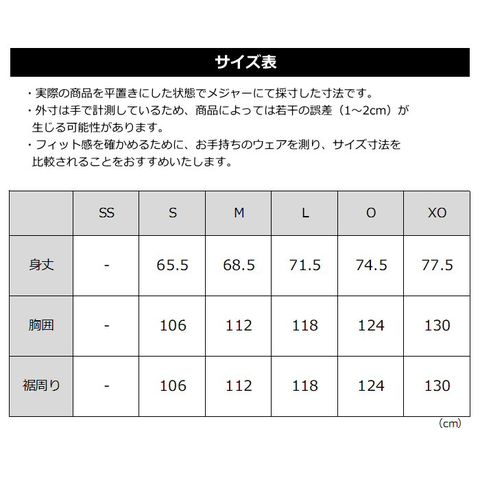 ■サイズ S M L O XO(ユニセックス)