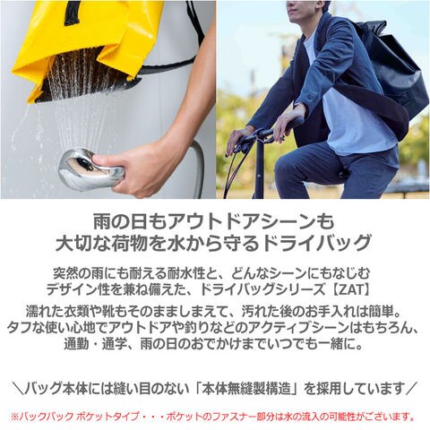 突然の雨にも耐える耐水性と、どんなシーンにもなじむデザイン性を兼ね備えた、ドライバッグシリーズ【ZAT】。