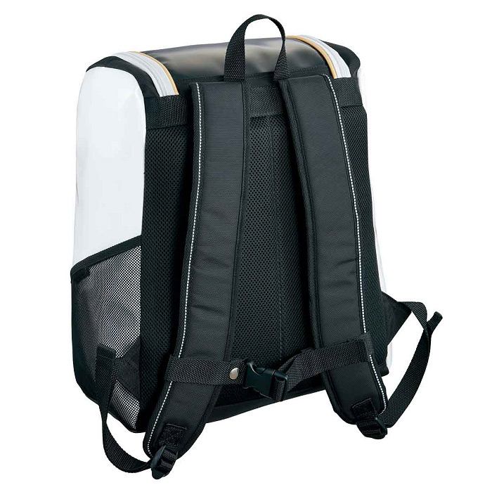 ショルダーのフチに反射テープ付きで安全性も考慮したエナメルデイパック。
