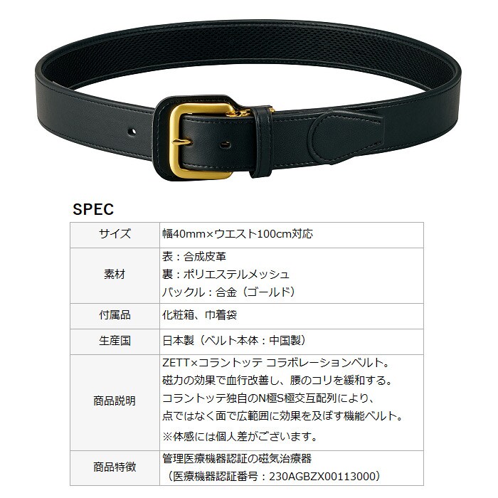 ZETT×コラントッテ コラボレーションベルト。磁力の効果で血行改善し、腰のコリを緩和する。