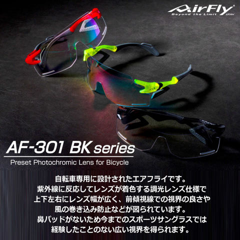 ジゴスペック【ZYGOSPEC】サングラス エアフライ AF-301 BK series 2025年継続モデル 【 AF301BK AirFly バイク 自転車 調光レンズ アイウェア 鼻パッドなし 】【翌日配達対象】[自社]