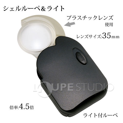 ルーペ ライト付き シェルルーペ&ライト 4.5倍 プラスチックレンズ 1030 虫眼鏡 拡大鏡 池田レンズ アウトレット