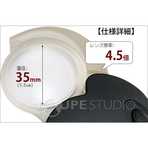 ルーペ ライト付き シェルルーペ&ライト 4.5倍 プラスチックレンズ 1030 虫眼鏡 拡大鏡 池田レンズ アウトレット スペック