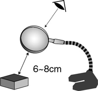 | 特 徴 | このルーペはレンズから約6~8cmのところで ピントが合うようになっております。 |