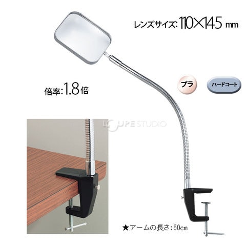 虫眼鏡 スタンドルーペ 1770 1.8倍 110×145mm 角型レンズ クランプ式 卓上 拡大鏡 ルーペ スタンド 池田レンズスペック