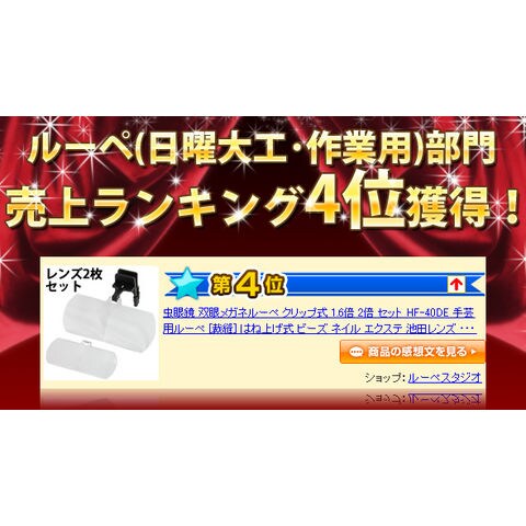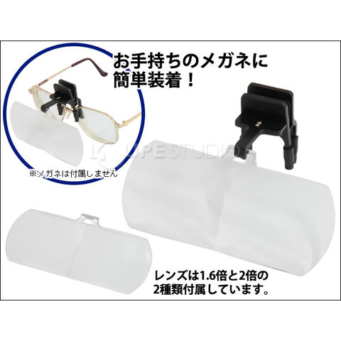 双眼メガネルーペ クリップ式 1.6倍 2倍 セット HF-40DE クリアルーペ メガネ型ルーペ 手芸用ルーペ [裁縫] はね上げ式 ビーズ ネイル エクステ メガネに付ける ヘッドルーペより気軽です 池田レンズスペック