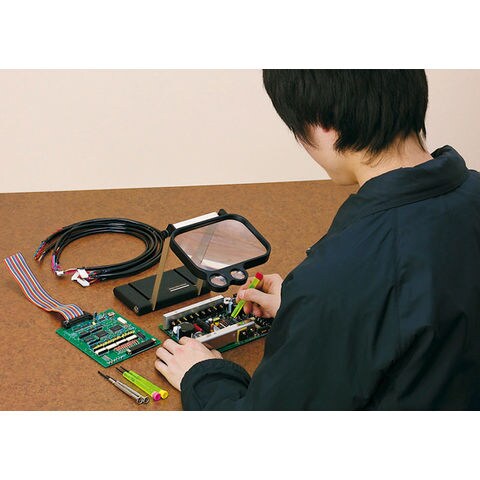 拡大鏡を奥に置いて使うと、広い作業スペースを確保できます。