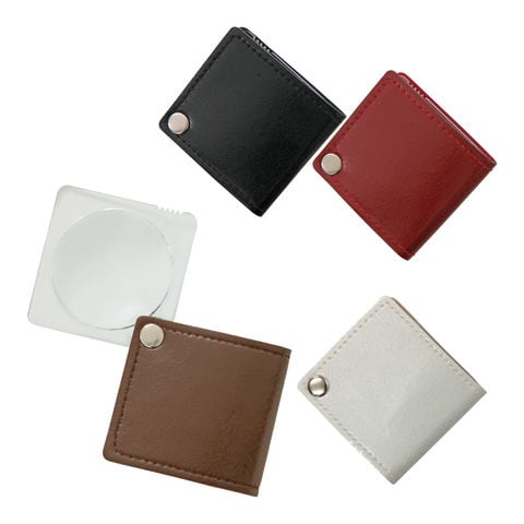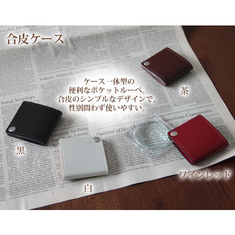 「黒・茶・ワインレッド・白」は、合皮ケースにガラスレンズを使用した携帯用ルーペです。レンズは丸タイプ。