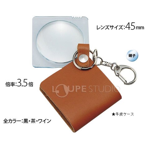 虫眼鏡 ポケットルーペ 3151K 3.5倍 45mm キーホルダータイプ 革ケース 池田レンズ