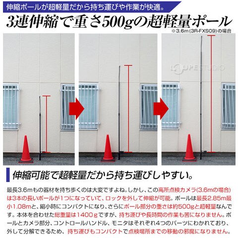 高所点検カメラ 3.6m 点検 高所作業 高い 工事用カメラ 防水カメラ 配管 つまり 3R-FXS09 おすすめ