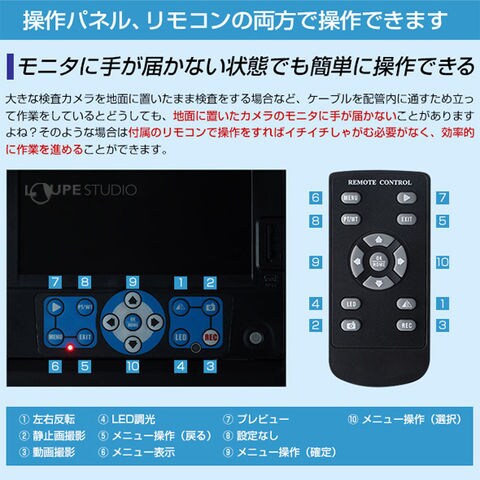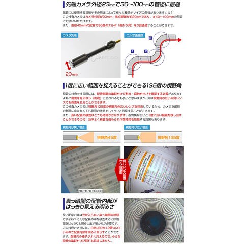 管内検査カメラ 40m 配管内部 カメラ 作業カメラ 点検 ケーブルカメラ 配管 つまり 3R-FXS07-40Mスペック