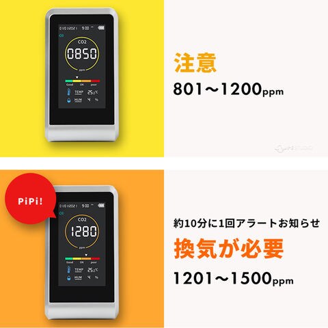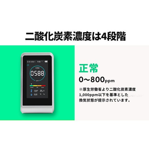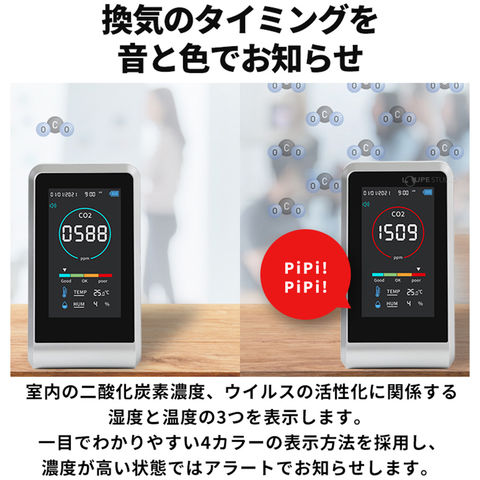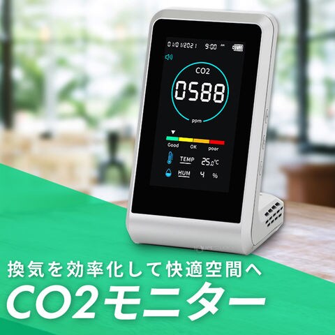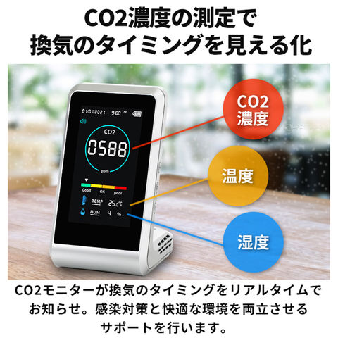 二酸化炭素 濃度計 CO2モニター 濃度測定器 センサー 温度計 湿度計 ウイルス対策 ウィルス 室内 換気 卓上 ディスプレイ