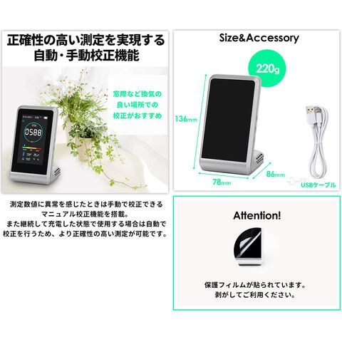 二酸化炭素 濃度計 CO2モニター 濃度測定器 センサー 温度計 湿度計 ウイルス対策 ウィルス 室内 換気 卓上 ディスプレイスペック