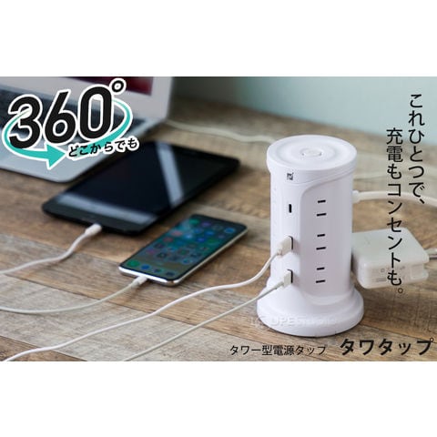 電源タップ USB type-c コンセント タワー型 パソコン スマホ タブレット ゲーム機 充電 デスク 黒 白 仕事 勉強 オフィス 事務用品 省スペース タワタップ 12口
