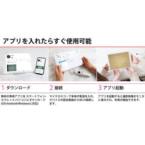| セット内容 | 200倍マイクロスコープ本体、200倍モデル用レンズカバー(60&200倍用/80&150倍用/100倍用)、専用スタンド、ホルダー、miniUSBケーブル、簡易スケール、AC/USB変換アダプタ、総合取扱説明書、専用アプリ使用説明書 |