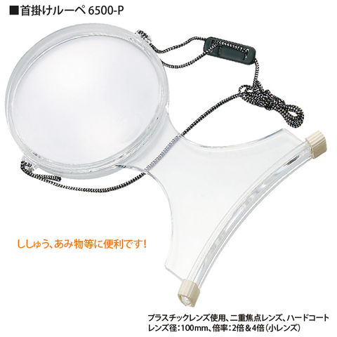 虫眼鏡 手芸用ルーペ [裁縫] 6500-P 2倍&4倍 100mm 両手が自由に使える首掛け拡大鏡 池田レンズ