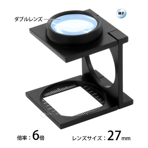 虫眼鏡 リネンテスター 7552 6倍 27mm ダブルレンズ ブラック ミリ&インチメモリ 測量,検査用ルーペ 日本製 池田レンズスペック