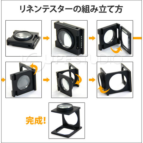 リネンテスターとは : 元来は繊維(リネン)の織り上がりを検査するために作られたルーペですが、検査物が平面のもの(印刷物など)を簡易検査するときに便利です。 小さく折りたたむことが可能なので、ポケットに入れて持ち運べる簡易検品用ルーペ(対象物:平面物)をお探しの方におすすめです。
