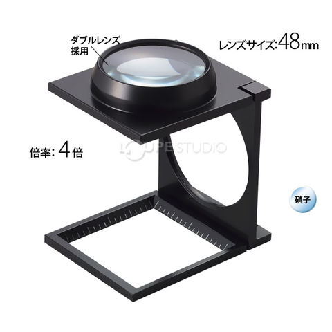 虫眼鏡 リネンテスター 7670 4倍 48mm ダブルレンズ ブラック ミリ&インチメモリ 測量,検査用ルーペ 日本製 池田レンズスペック