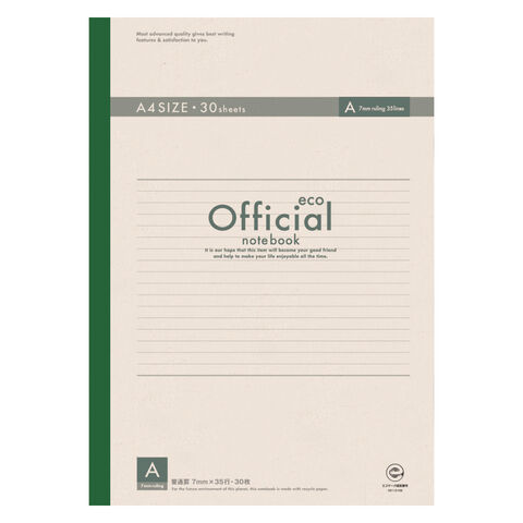 | 商品仕様 | ●罫種類:A罫(7mm罫×35行)●中紙枚数:30枚●外寸:縦297×横210mm●材質:古紙パルプ100%配合再生紙使用●ISO白色度:70% |