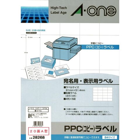 エーワン PPC コピー ラベル B4判 20面A型 宛名・表示用 100枚 28268