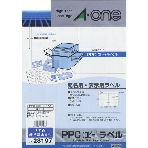 エーワン PPC コピー ラベル A4 12面 宛名・表示用 20枚入 28197