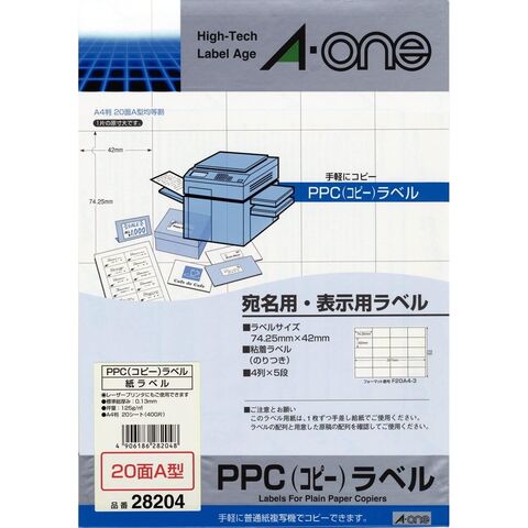 エーワン PPC コピー ラベル 20面A型|宛名 表示 上質紙 4906186282048