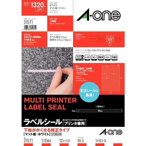 エーワン マルチプリンタラベル 下地隠る修正タイプ A4 110面 12シート入 31571