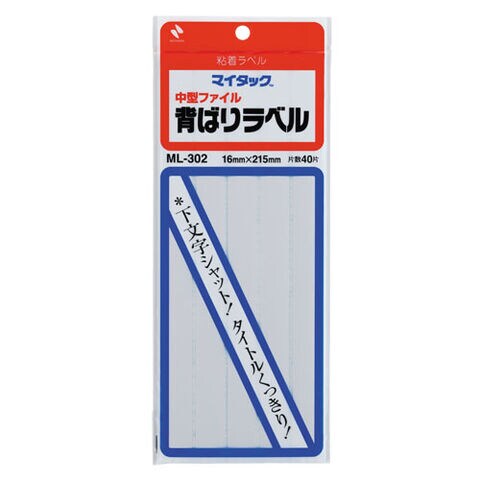ニチバン マイタック 背ばりラベル ML-302|一般用 中型ファイル 40片入