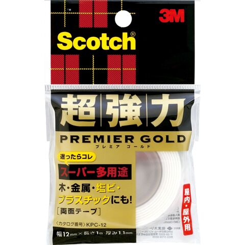 両面テープ スコッチ 超強力両面テープ プレミアゴールド KPC-12|3M 多用途 接着 金属 プラスチック