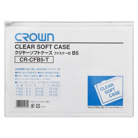 クラウン クリヤーソフトケース B5 透明 CR-CFB5-T|ファスナー付き 塩化ビニール 0.3mm厚