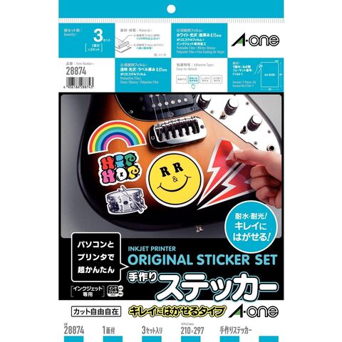 エーワン ステッカーキレイにはがせるタイプ A4 1面 28874|インクジェット 3セット