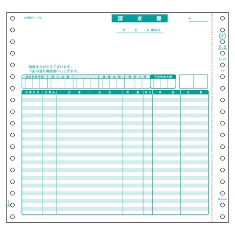 | 商品仕様 | ●複写枚数:2枚●サイズ:9”×91/2”(縦228.6×横241.3mm)●ミシン目切離し時サイズ:横幅88/10”(223.5mm) |