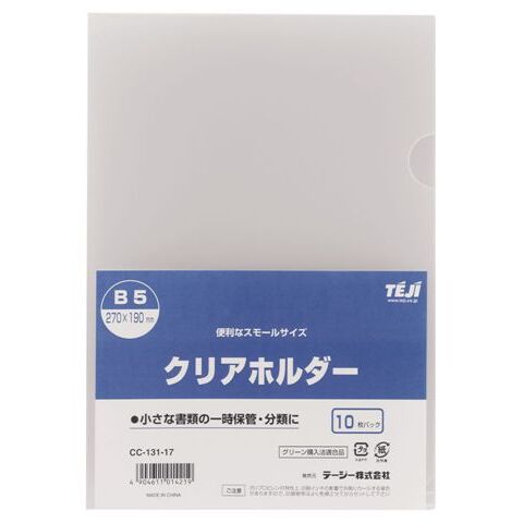 テージー クリアホルダー B5 10枚入 CC-131|書類整理 透明 ファイル CC-131-17 クリア