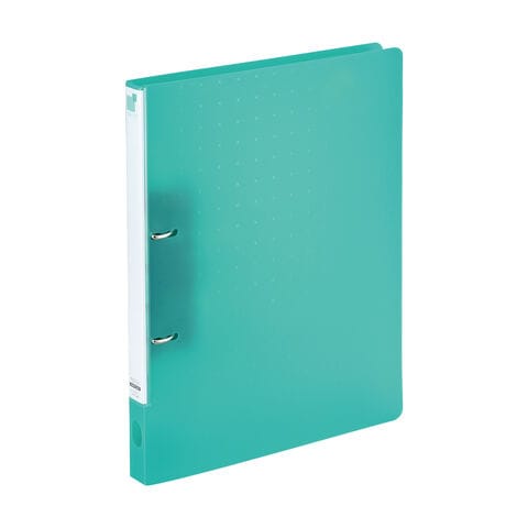 | 商品仕様 | ●スリムな背幅でファイル棚にもコンパクトに収納。●リングを時計方向にひねると簡単に開きます。●リングの高さは約30mmで、コピー用紙を約180枚収容できます。●リングの左右の高さが違うため、となりのリングに当たらずコンパクトに収納できます。 ●PP表紙●外寸:縦306×横243mm●背幅:27mm●適正収容:180枚●リング内径:22mm●穴数:2穴●穴間隔:80mm●材質:表紙=PP,綴じ具=スチール |