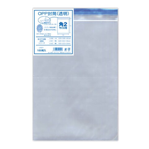 | 商品仕様 | ●規格:角2判用●外寸:縦332×横240mm●厚0.05mm●材質:OPPフィルム●接着テープ付 |