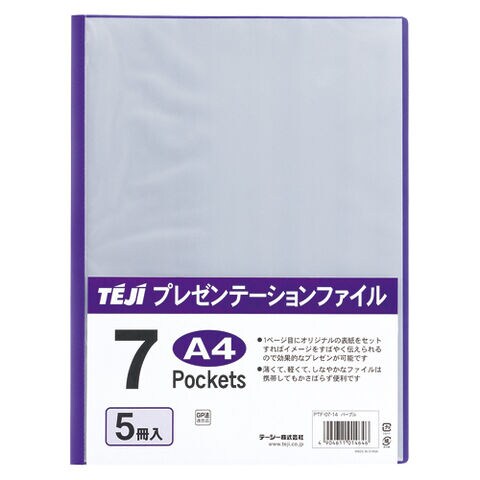 テージー プレゼンファイル A4 7P パープル|資料 収納 スリム 透明 5冊入 PTF-07-14