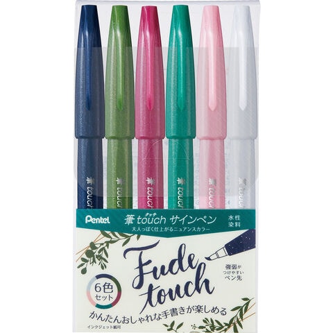 ぺんてる 筆タッチサインペン 6色セットB SES15C-6STB|筆ペン イラスト カリグラフィー 水性染料 6色セットB