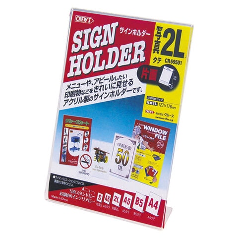 クルーズ サインホルダー 片面用 写真2Lタテ CR69501|アクリル製 事務用品 ディスプレイ