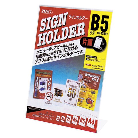 クルーズ サインホルダー 片面用 B5タテ CR47601|メニュースタンド ポップ立て 透明